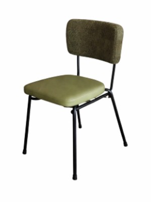 Description European bistro inspired dining chair with custom upholstery and powdercoat RAL steel frame.