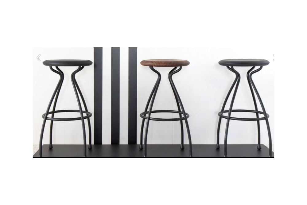 coating, standard mat black, (RAL colors on request) with solid wooden seat (walnut or ash).