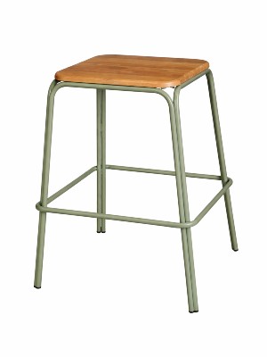 Description Classic school chair reimagined: available in a side chair, armchair, barstool and barstool with backrest. Teak slatted seat and backrest with aluminium frame, custom powdercoat colours.