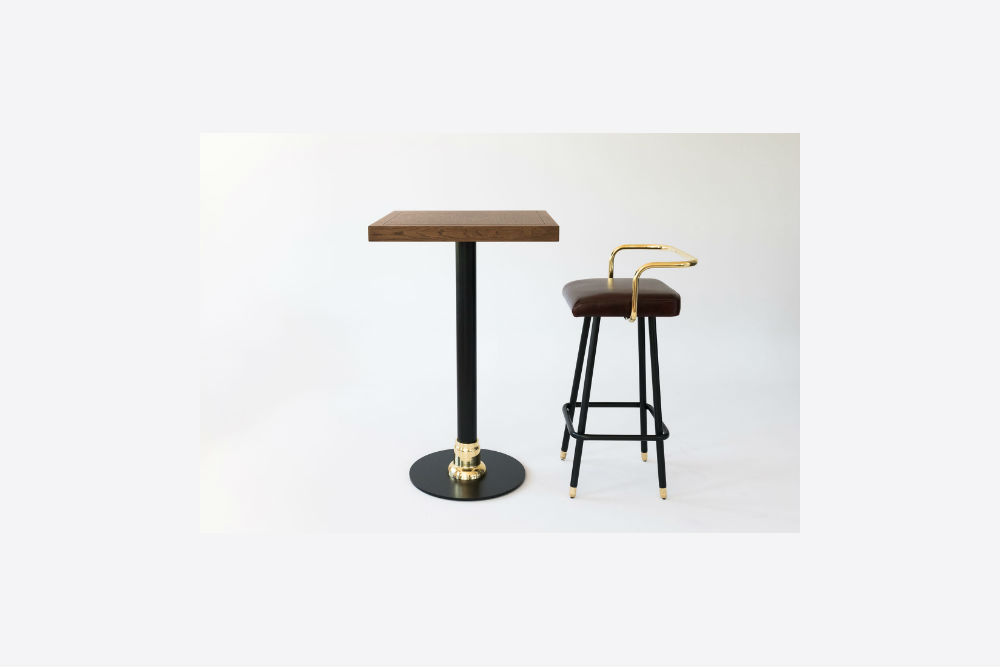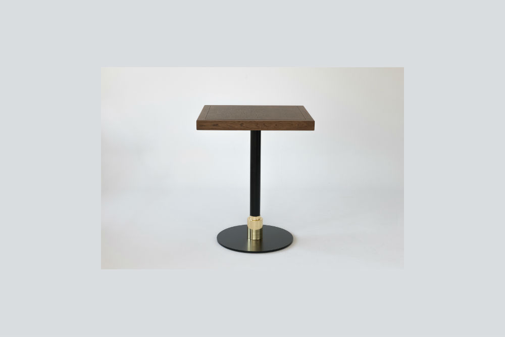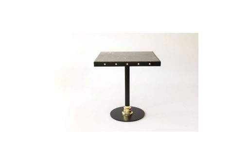 Description Ring table has a wooden or marble surface. It can be accesorised with a metal frame and bottons in gold finishing and has a distinctive black metal base with a gold ring.